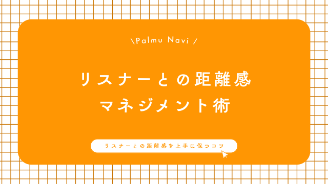 Palmuノウハウ リスナーとの距離感マネジメント術|Palmuで長く愛されるために 2026年2月28日 Palmu Navi編集部 https://berillive.com/media/wp-content/uploads/2025/12/logo.png Palmu Navi|ライブ配信アプリPalmuの魅力を届けるWebメディア